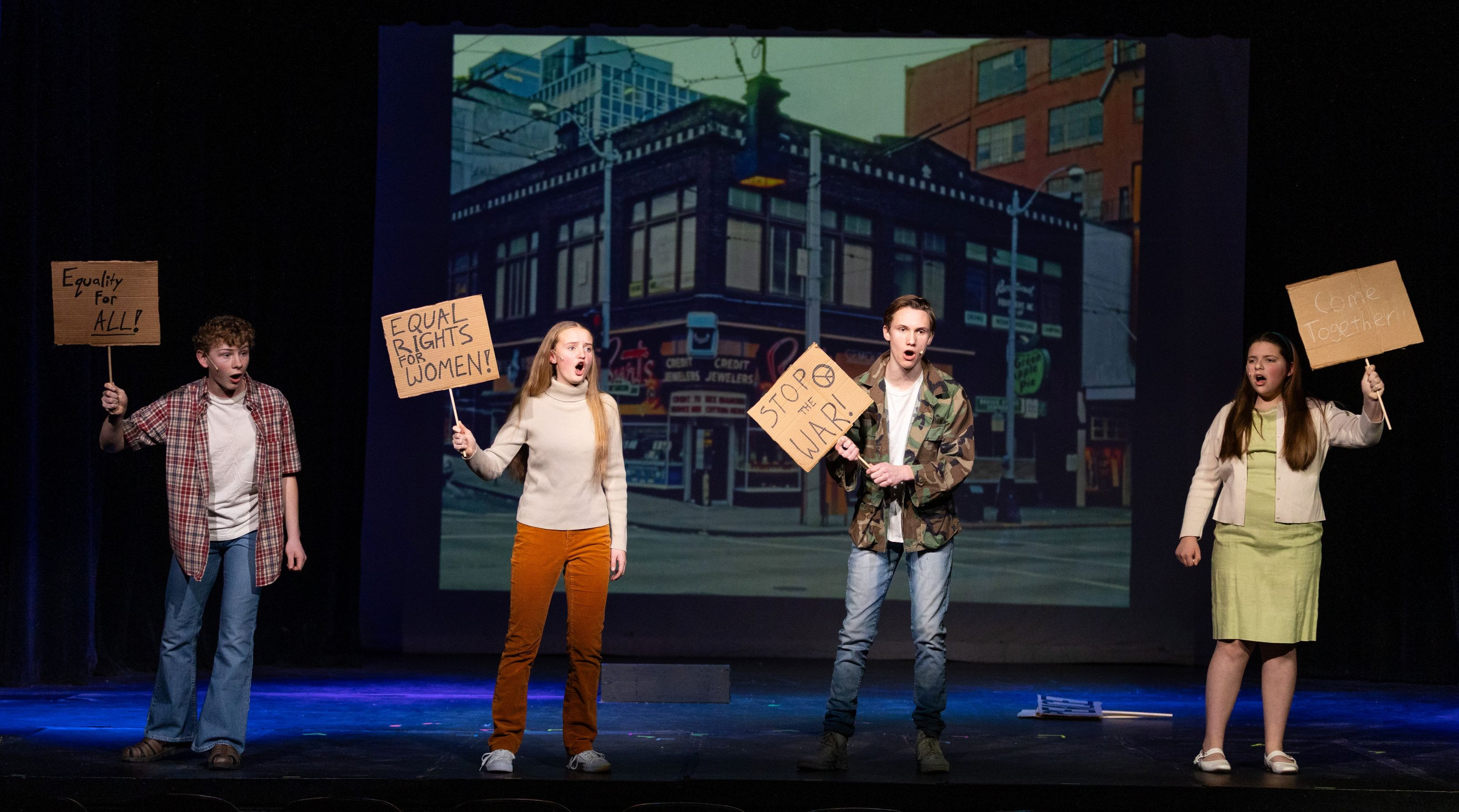 The show was an absolute delight for our students and our audience. The kids loved recreating the year 1969 and learning a lot about a time that is sometimes misunderstood. The audience just roared with laughter and went silent with the serious parts. Each person that came out of the theatre just gushed with encouraging words for the kids and the staff!